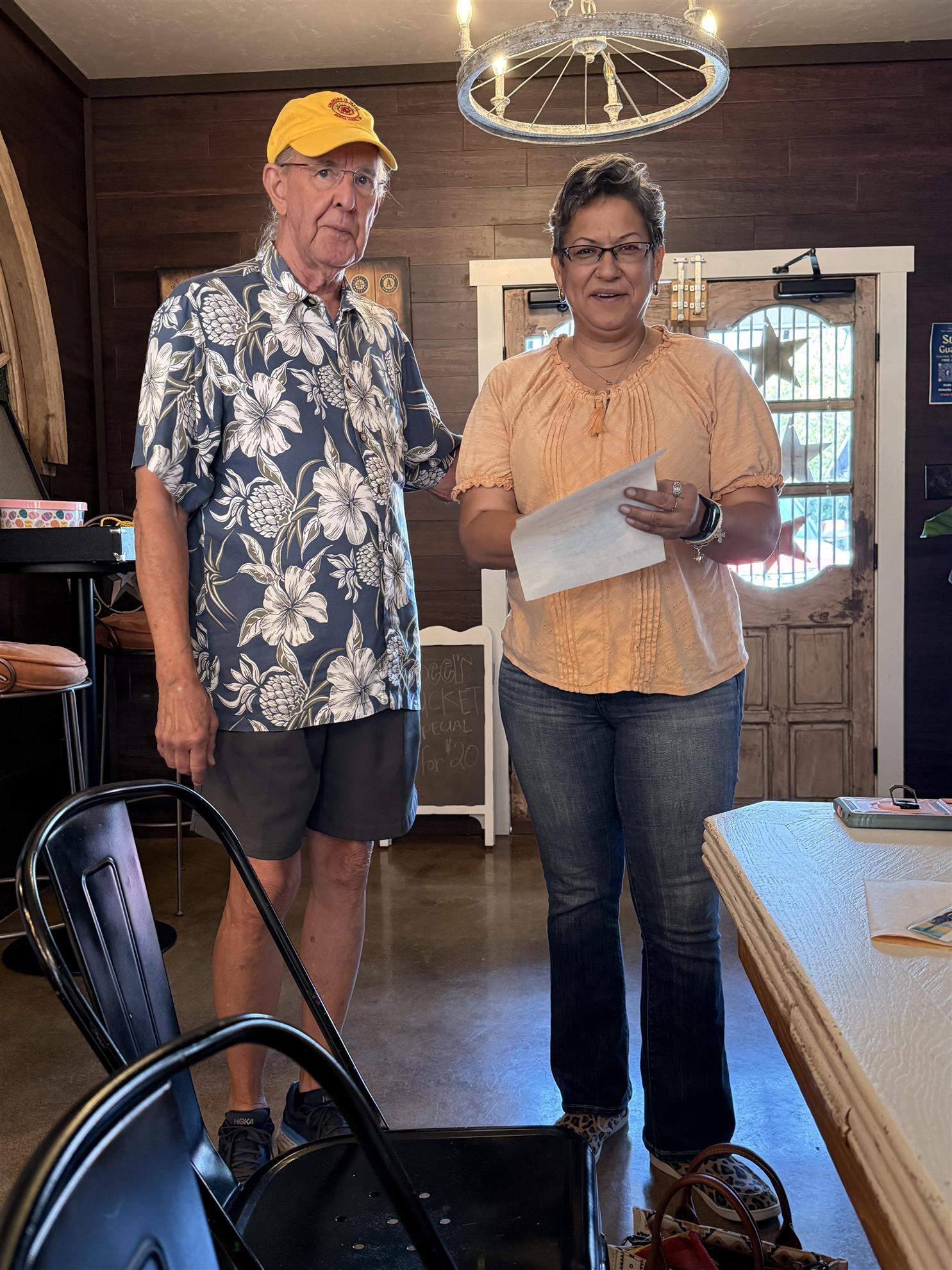 Frank Dunlap (left) Welcome our newest member Geraldine Scripps-Granado at our meeting October 2, 2025.